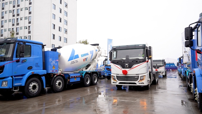 本次发车的产品涵盖徐工新能源纯电动牵引车、自卸车、搅拌车等多个系列,覆盖客户矿山、商砼、短途运输等多个细分运营场景,以绿色交通运输成套化解决方案,为用户带来了前所未有的使用体验。