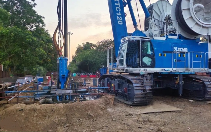 徐工XTC120双轮铣槽机被客户选中赴南亚地铁项目,其中2台设备施工工况极为复杂,自进场以来,设备完美匹配工法需求,经受住了连续高强度作业的考验。