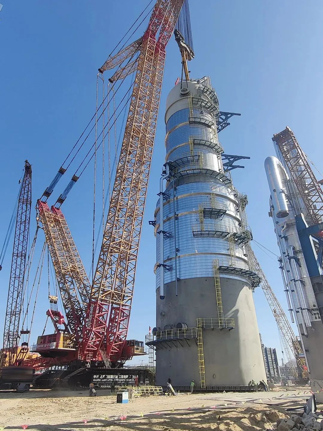 近日,徐工XGC88000(4000吨级)履带起重机在我国华南某大型石化项目现场,成功完成重达2000吨的急冷水塔设备的吊装任务。