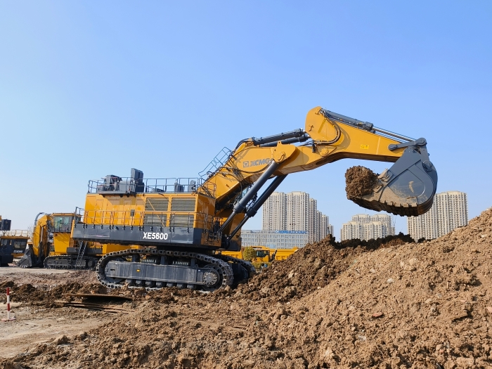 此次交付的XE5600矿用挖掘机是徐工自主研发、填补400至700吨级产品型谱空白的高端之作,配备两台1520马力发动机驱动,动力十分强悍,可搭配徐工230-300吨级矿车成套使用施工。