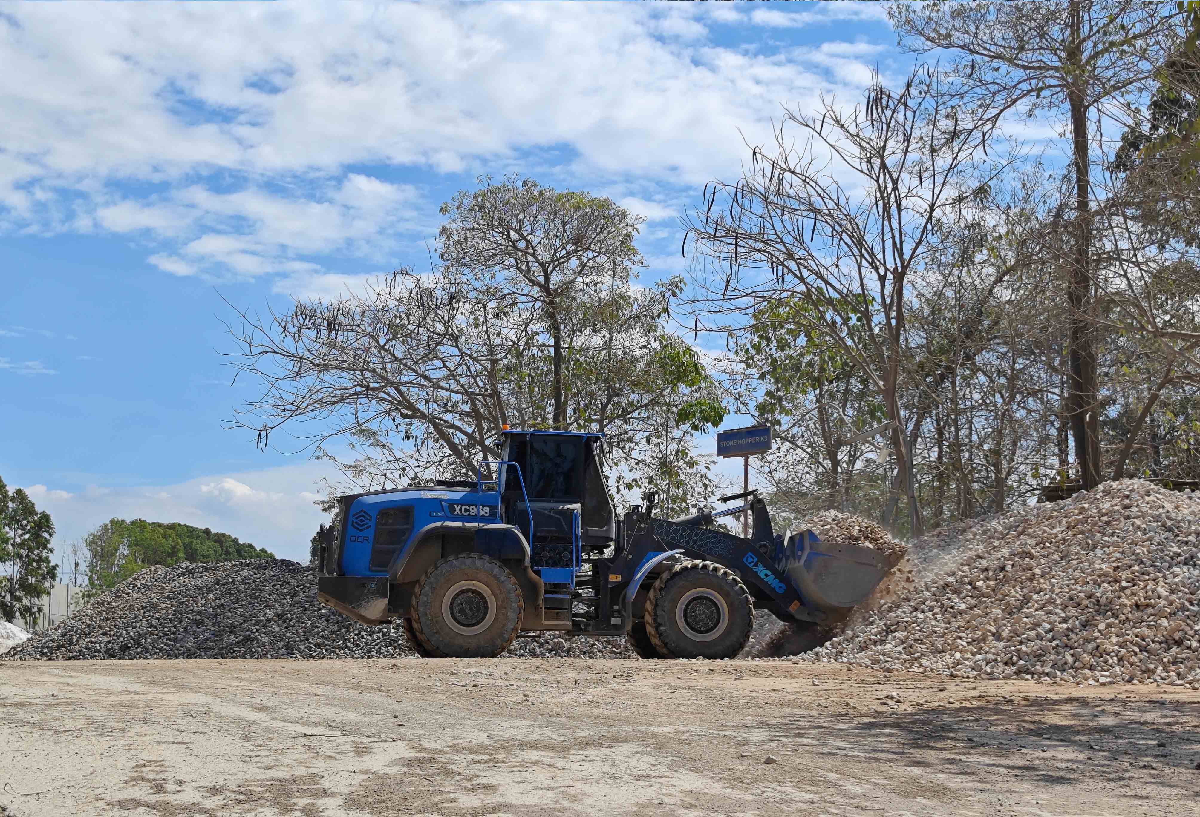 矿山生产,作业时间长,物料坚硬密度高,道路崎岖,工况较为险重。徐工XC968-EV纯电动装载机的新能源优势,在矿道端的铲装作业优势非常明显,相对密闭空间内,零排放、低噪音对工段一起作业的户外工作人员的健康非常友好。