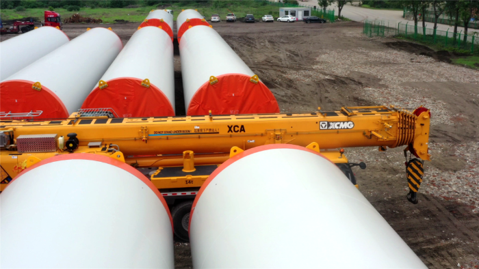 在繁忙的港口,长40米、重100吨的风力发电塔筒摆放整齐,等待着一次关键的腾挪,吊装空间局促——塔筒摆放距离较近,荡距空间严重受限,这是对起重机性能与操控的极致考验。徐工G2代起重机XCA200G8-1从容入场,以实力宣告:空间,绝非限制。