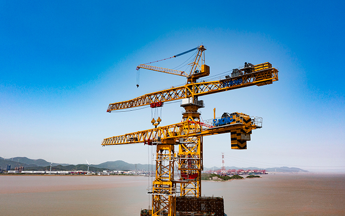 初夏时节,东海之畔,徐工XGT7300-260S、XGT8300-320S挥舞铁臂,如“定海神针”矗立深蓝,助力舟山六横大桥二期工程青龙门大桥主塔施工,“海上巨龙”稳扎稳打向上攀升。
