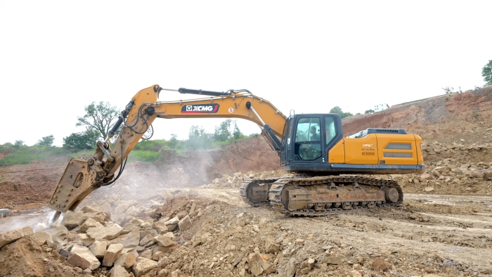 徐工挖掘机打破碎很有劲,驾驶舒适。我们在这个项目上主要做巨石破碎工作,徐工的设备在回转、破碎等动作上都表现的很优秀,属具更换很便捷,底盘比其他品牌的同吨位设备都要稳。