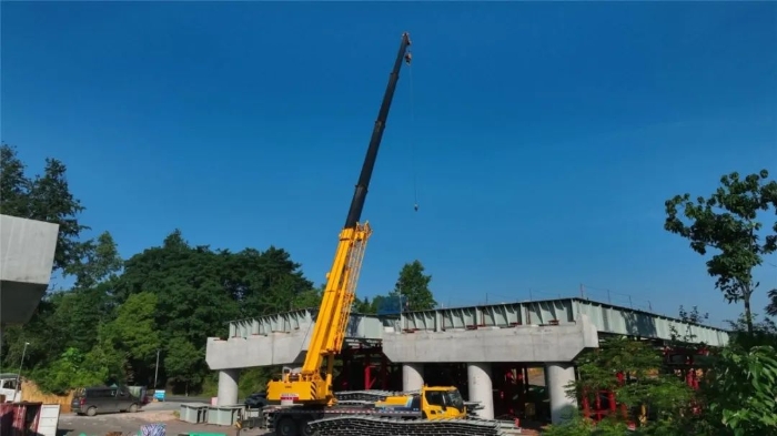 湖北通修高速公路建设现场,徐工G2代50吨新能源起重机正展露锋芒。14米长、重达1吨的桥梁竖梁凌空而起,500斤横梁于视野盲区精准对位——这是对起重机微动性与操控性的极限考验。
