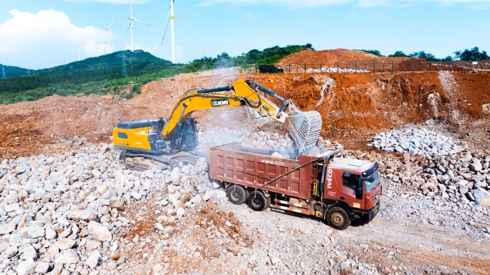 湖北宜城矿区深处,白云岩资源富集,开采作业正酣。徐工XE500GK液压挖掘机以主力姿态投身于繁忙的开采队伍当中,以卓越性能与可靠品质,赢得施工方高度认可,成为这片坚硬岩层中名副其实的“掘金巨无霸”。