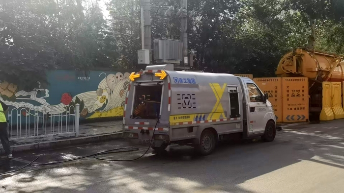 ➤多模式清洗:支持线状高压水幕清洗、柱状单点清洗、手动喷枪清洗,甚至可搭配手推式喷管清洗作业,实现“点-线-面”全覆盖。