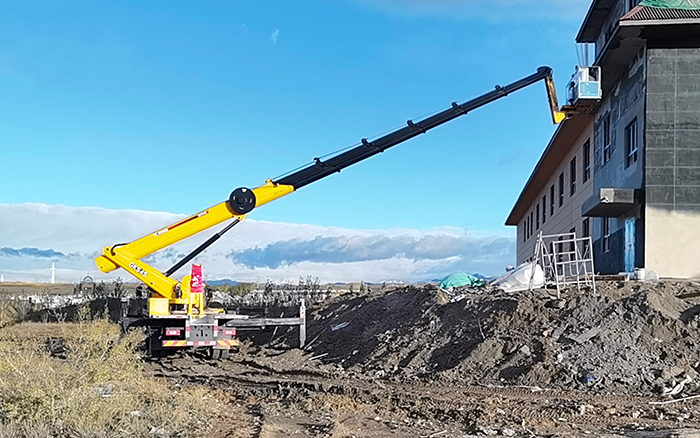 在某建筑外立面翻新工地,斑驳墙体待焕新,徐工 GKS45A 高空作业车凭借核心性能,成为破解高空难题的 “主力”,尤其在安全、高效与平稳性上,完美适配翻新作业需求。翻新作业中,GKS45A 的平稳性与高效性通过飞臂设计充分体现。面对墙体转角、窗台凸起等障碍,飞臂可灵活调角避障,平稳将人员与工具送抵作业点,无需反复调整设备,大幅减少无效时间,让打磨、涂漆等工序顺畅推进;搭配全幅度回转功能,作业平台能灵活覆盖各翻新点位,进一步提升施工效率。