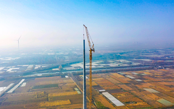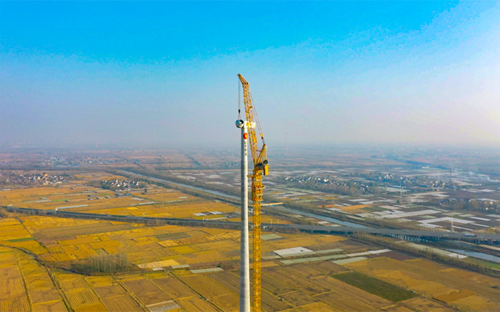 作为目前全球最大最高的风电动臂塔机,徐工XGL3300-220S凭借220吨最大起重量稳稳擎起巨型机舱与叶片,在170米的高空中从容应对风向变化。