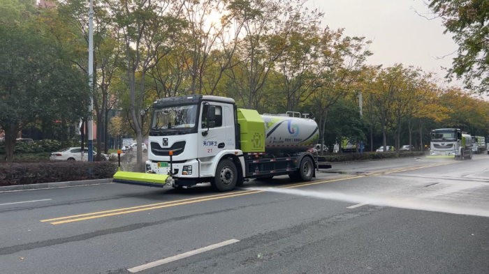 “徐工新能源装备没有尾气排放和噪音污染,为城市环境改善和作业人员健康提供了有力保障。”现场负责人表示,“同时水箱容量大,在作业过程中,无需频繁停下来进行补给,大大提高了作业的连续性,提升了整体作业效率。”