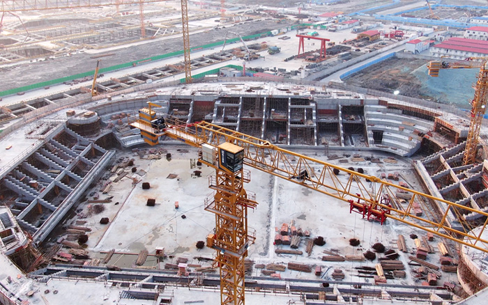 该项目造型独特,主赛场区域结构复杂,同时采用大量的曲线设计,给现场钢筋、水泥预制件的制作与安装带来了巨大挑战,也对塔机的综合性能提出极高要求。