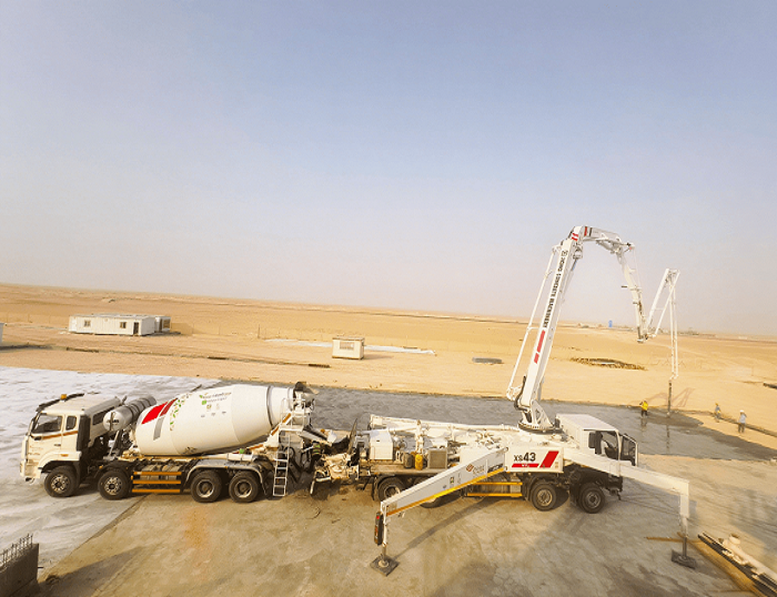 近日,在沙特达曼建筑项目现场,徐工混凝土成套化设备凭借高效协同作业,精准完成了浇筑任务。