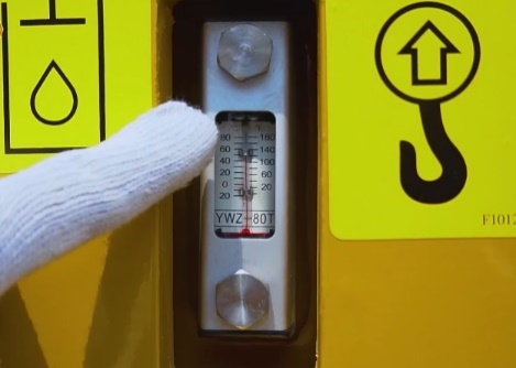 通过液位计检查液压油位,油面须保持在液位计中间刻度以上。如果液位过低,旋开液压油加注口的盖子,补加液压油。