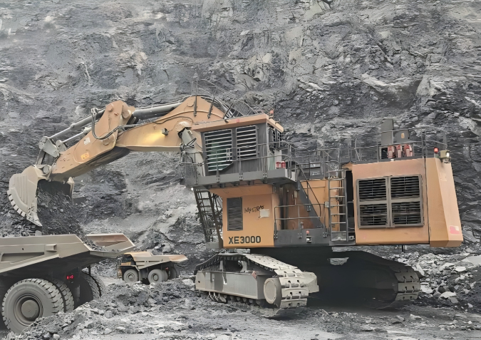 作为徐工300吨级矿用挖掘机的标杆之作,XE3000凭借卓越的适应性与可靠的作业能力,深度契合当地矿区高强度、连续化的开采需求。设备搭载1193kW大功率发动机与先进液压系统,动力输出强劲且控制精准;反铲标配15m³超大斗容,单斗挖掘量超过三十吨,显著缩短装运周期,实现效率与效益的双重提升。