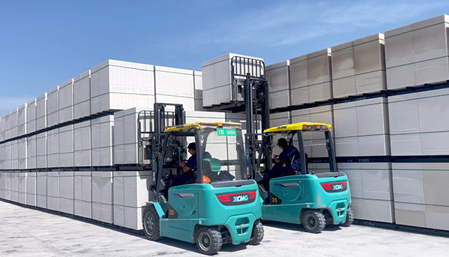 考虑到现场高强度工况,整车配备大功率交流电机,作业效率显著提升,高品质的部件和结构件保证设备长时间稳定输出。重载型驱动桥搭配高支点转向桥、加强型门架使得整车更为安全稳定,拥有极高的承载能力,轻松应对现场高强度、高负荷现场的材料搬运任务。成品的堆垛高度通常在3米左右,徐工叉车为客户配备了OPS安全防护系统、门架下降智能缓冲功能,贴心保障人员及货物安全。