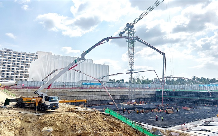 琼浪翻涌,向海而兴。在海南自贸港建设的前沿热土——三亚,4台徐工大米数泵车臂架而立,凭借超强泵送力、精准布料与极致稳定性,持续攻坚、高效作业,将10000方C40P8高标号混凝土精准浇筑入项目核心区,为海南建设进程贡献可靠的“徐工力量”。