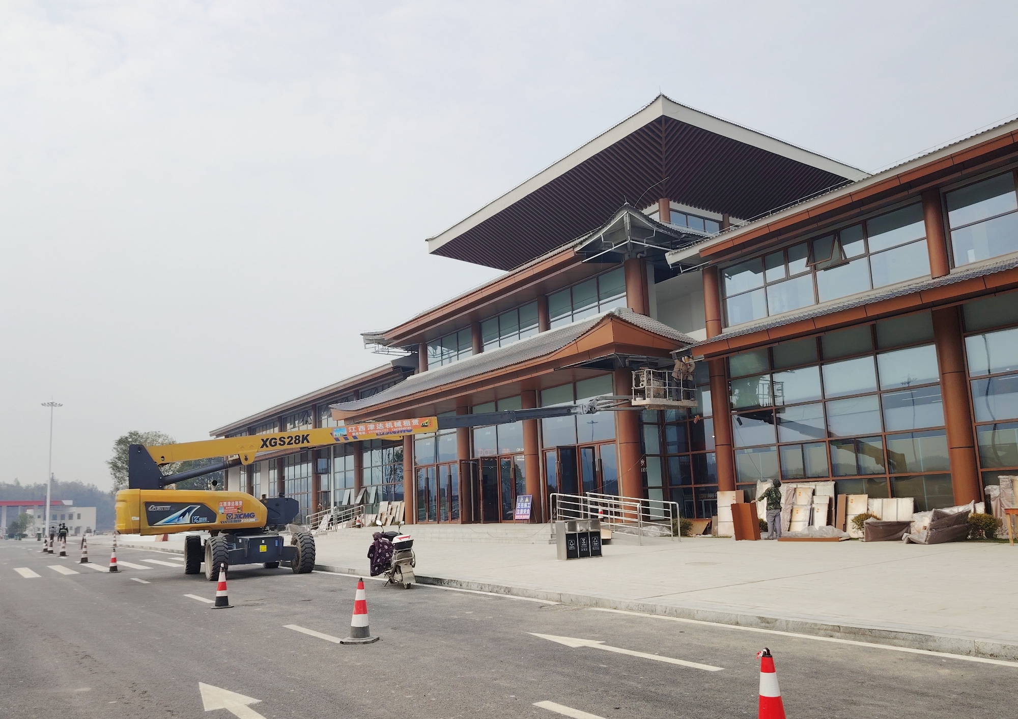 在江西省吉安市峡江服务区升级改造施工现场,徐工XGS28K直臂高空作业平台化身施工利器,高效完成服务区管线铺设、外立面装饰等多项作业。