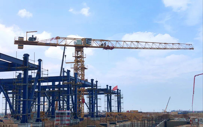 石化项目建设大多是大型钢构建筑,对塔机要求更为严苛。项目使用的XGT7527-18S产品吊装载荷大,覆盖面积广,特别适合于中大型钢结构建筑的吊装施工。产品应用起升零速悬停、防溜钩、防冲顶、防倒塔(顶升配平)、防超载、机电限位安全双保护及互校等多项技术为基础的智能控制系统全方位保障吊装的安全和精度,可谓钢结构吊装利器!