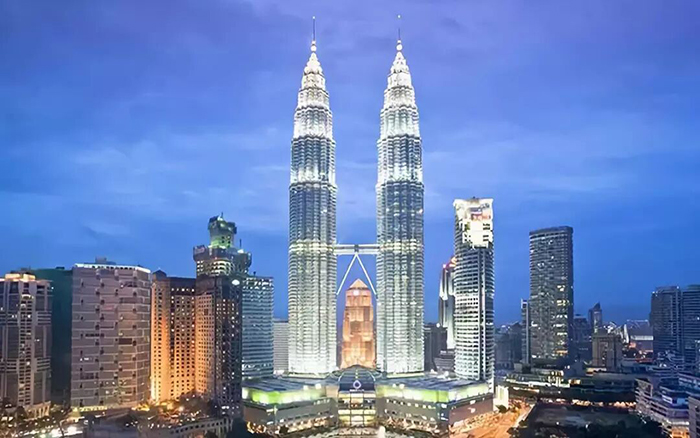 吉隆坡石油双塔高452米,共地上88层,曾经是世界最高的摩天大楼,目前仍是世界最高的双塔楼,也是世界第八高的大楼。