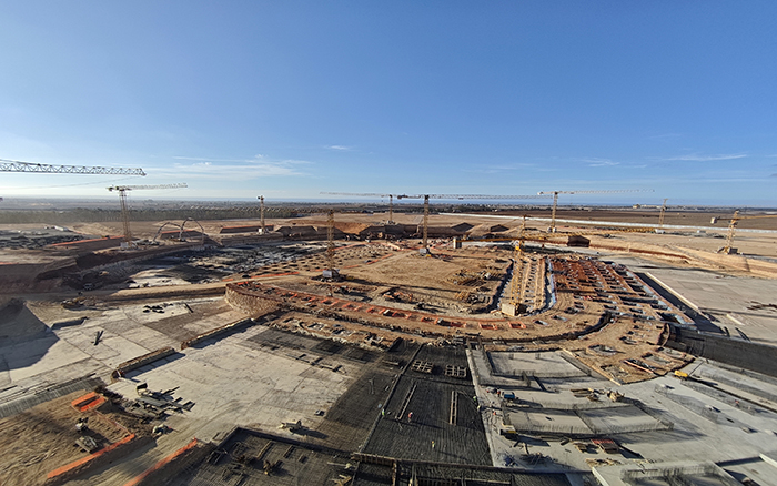 在地中海南岸的摩洛哥卡萨布兰卡,2030年世界杯核心场馆--哈桑二世大体育场正拔地而起。这座可容纳11.5万人的全球最大足球场,因巨型“帐篷”造型、超大体量钢结构设计及严苛的施工精度要求,给施工带来极大的挑战。