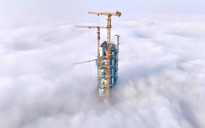 为此,四台徐工塔机分工明确、穿插有序,以卓越的抗风设计与毫秒级微动控制技术,在200米高空实现吊装的精准就位,为同步焊接作业构筑起稳固的安全平台,成功为项目提前60天竣工提供设备基础。