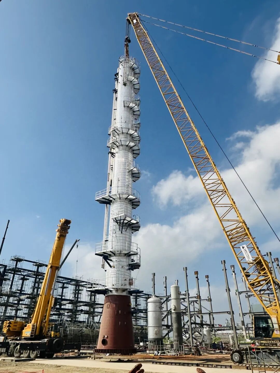 挑战突破:擎起石化“巨无霸”此次吊装的C-201苯塔为装置最高核心重器,体型庞大、安装精度要求极高。面对场地限制、设备高耸易受风载影响等难题,徐工XGC400以超凡性能迎难而上: