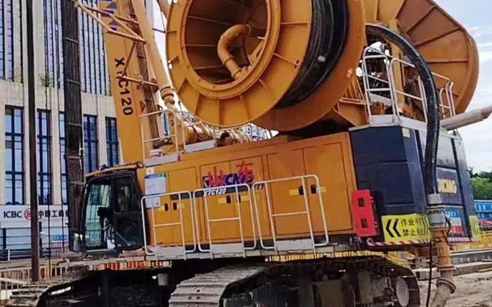 XR420E旋挖钻机率先施工钻进进行引孔,徐工连续墙液压抓斗抓取一定深度后,硬岩地层由徐工双轮铣进行铣削,成套化施工效率最大化!