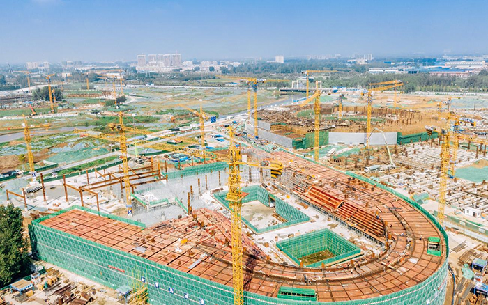 在临沂奥体中心项目工地,六台“徐工金“高速运转,将建筑材料准确送到预定位置,助力场馆建设。临沂奥体中心总投资34.8亿元,项目共设一场两馆两中心。目前,体育场、体育馆及游泳馆三个单体项目桩基已经完成,正式进入地上主体工程施工阶段,预计年底完成主体结构封顶。